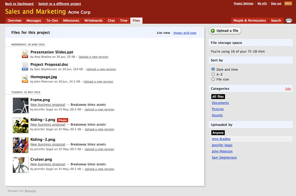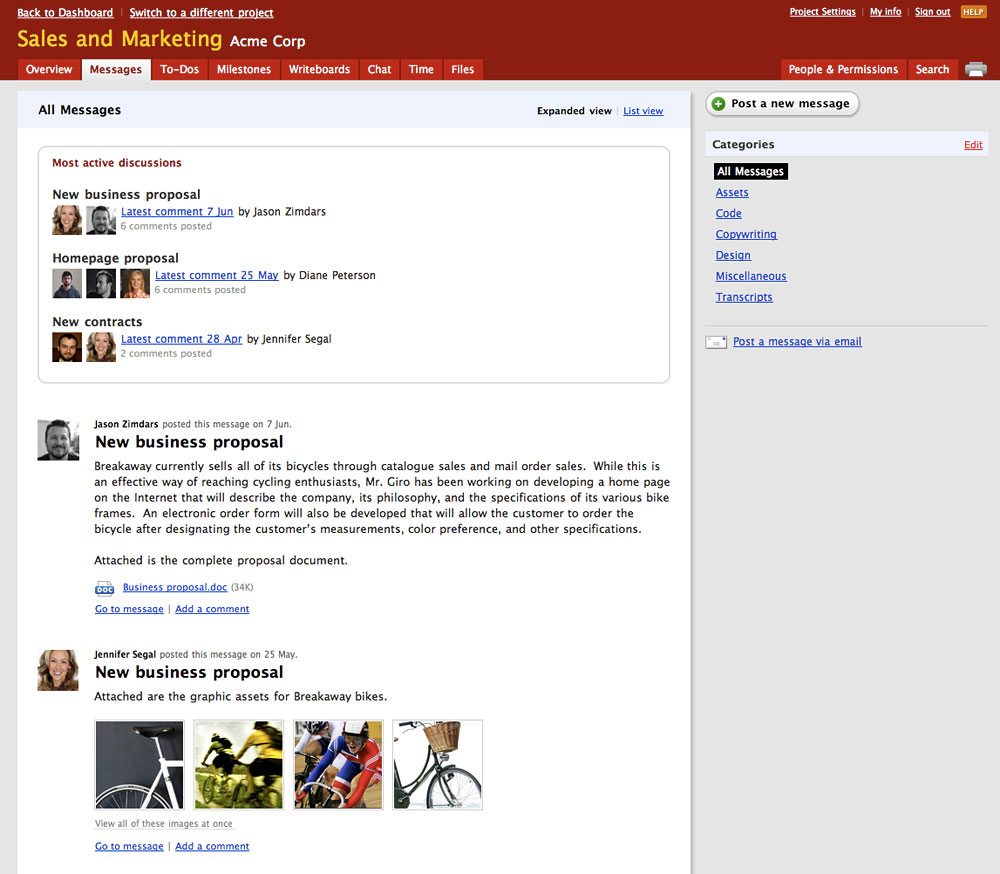 For years project management software was about charts, graphs, and stats. And you know what? It didn’t work. Pictures and numbers don’t get projects done. Basecamp tackles project management from an entirely different angle: A focus on communication and collaboration. Basecamp brings people together.[i]