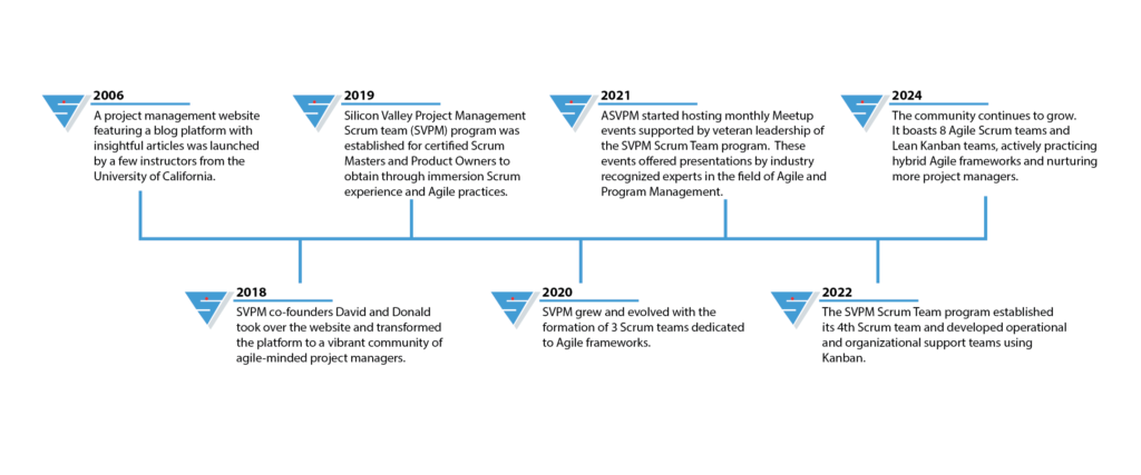 The Silicon Valley Project Management website – SVProjectManagement.com – was started in 2006 to create a community of Project Managers who share best practices, experiences, and lessons learned. Our cross-functional volunteer community adapted a hybrid of Agile frameworks and created the SVPM Scrum Team program.