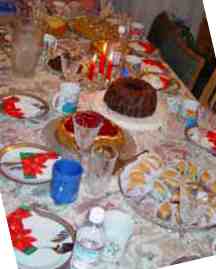 We take an hour nap as a reward for our hard work of the last few days, and to renew our energies.  Soon the doorbell rings, and my sister comes with the kids; then the neighbors. Soon, the house is a warm, aromatic, noisy, home full of Christmas Love!  The lights are twinkling; the kids are running around, the adults are sneaking bites of food as it comes out of the oven.