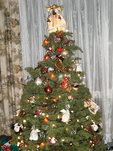 Up the tree goes, and now to excavate the ornaments from the garage.  As kids, our mom would sit in the recliner, and direct us to decorate the tree. Now as an adult, I know all too well who will act as Foreman on this construction site!  I remember all those Christmases as kids, when we used to compete each year to see who got the most presents, or who got to pass them out.  I learn not to care whether the gold snowflake ornament is placed on the top left branch or the lower right. Whereever it makes her happy….that’s where it goes!