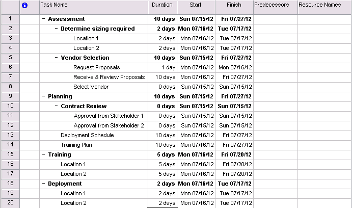The trick is to break it down into manageable tasks, but not every individual task. You don’t need to document that you’ll send followup emails or make followup phone calls – there is such a thing as *too much* detail. On the other hand, you will find that you need to ‘tweak’ this plan every now and then to keep it realistic and properly illustrative. Here’s an example of a printer deployment plan.