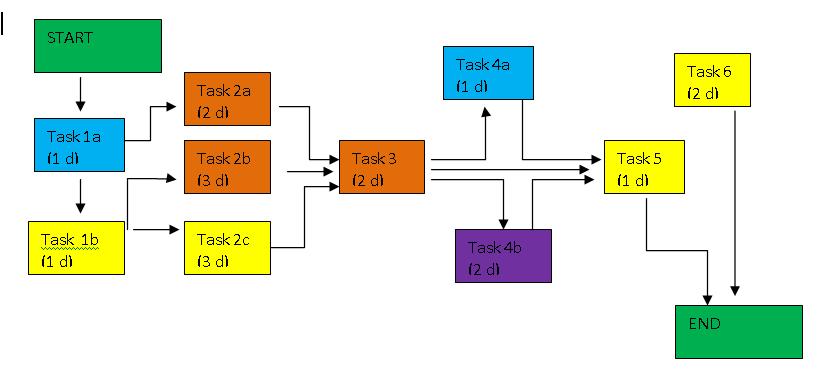 The last gift that critical path analysis presents us: highlighting imaginary dependencies. In this example, Task 6 is scheduled for the “end-game” of the project only because it isn’t needed until the end-game. But, once you map out the workflow and the true dependencies, you see that it isn’t actually dependent on any predecessors’ task. This is a great advantage to the project manager. He can now use this task when the project hits an unexpected delay or speed bump. When code is delayed, resources can be using that time to work on Task 6 without affecting the big-picture schedule or delivery dates. The 2-days it takes to setup Task 6 is already absorbed in the project plan. Therefore, you have essentially shaved 2 days in your schedule by moving up Task 6 and/or allocating other resources to it.