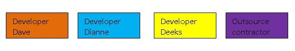 For instance: If Dave is the only person that has Sequel Server knowledge, then isolate all the Sequel Server items from the rest of Task 3 goals. Have Dave create re-usable subroutines in which Dianne and Deek can call upon to accomplish the rest of the activities. Dianne and Deek doesn’t need to know exactly how the database works underneath. They only need to understand the essence of what they are trying to accomplish with the code and use the proper function calls.