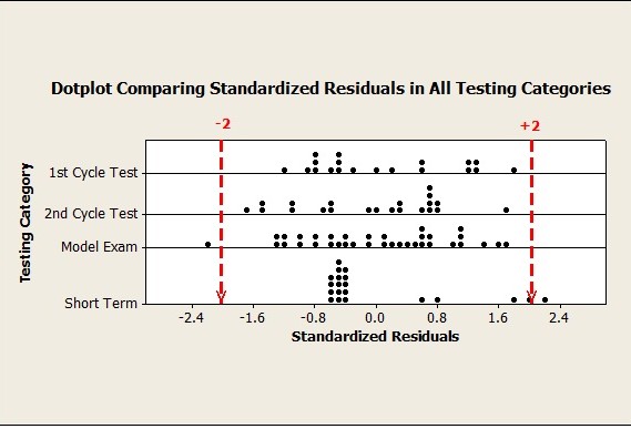 1. Residuals (ri) for all 1st cycle tests across 3 semesters (Predicted – Actual)