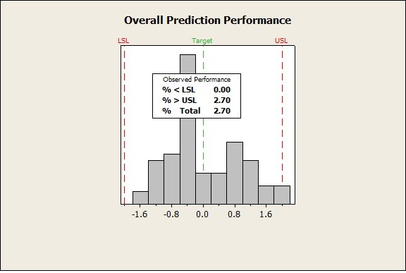 The overall predictive capability can be estimated by assuming that the SR values need to fall within the ± 2.0 limits. By plotting the capability of all SR values we can estimate the actual defect rate and quantify the effectiveness of such a model.