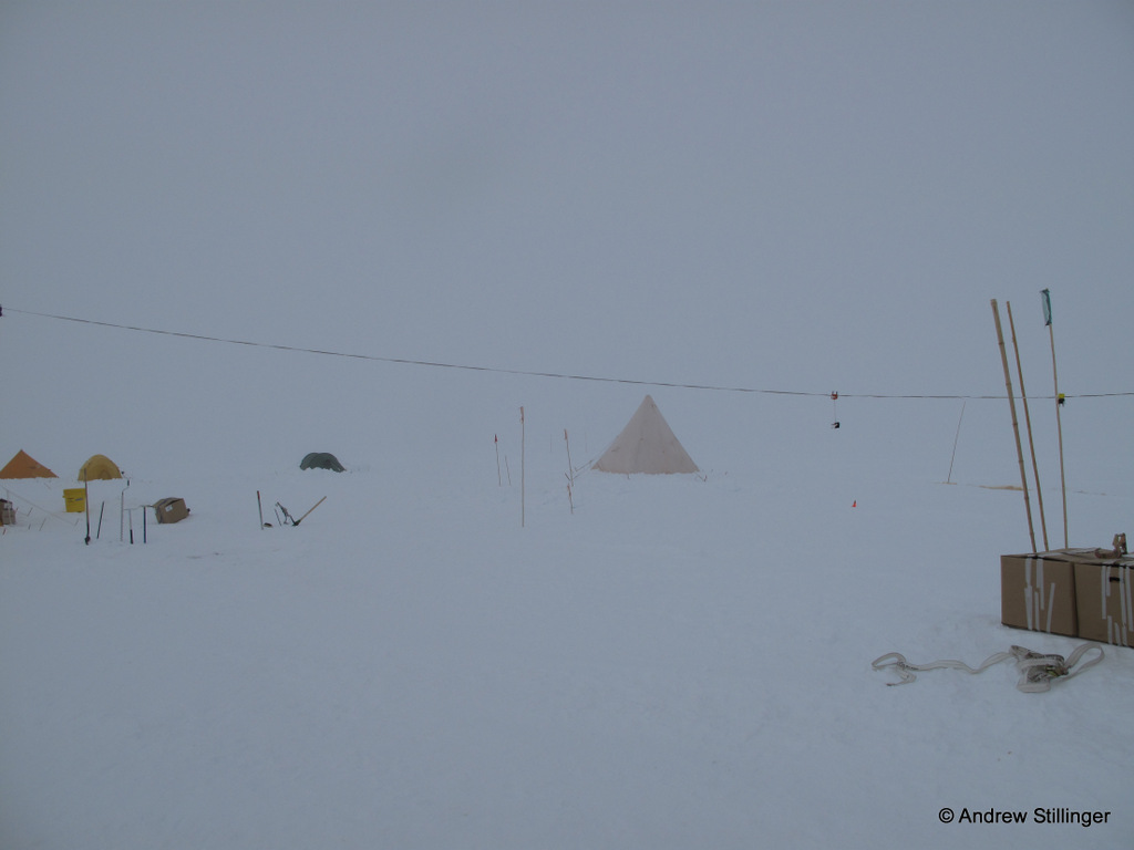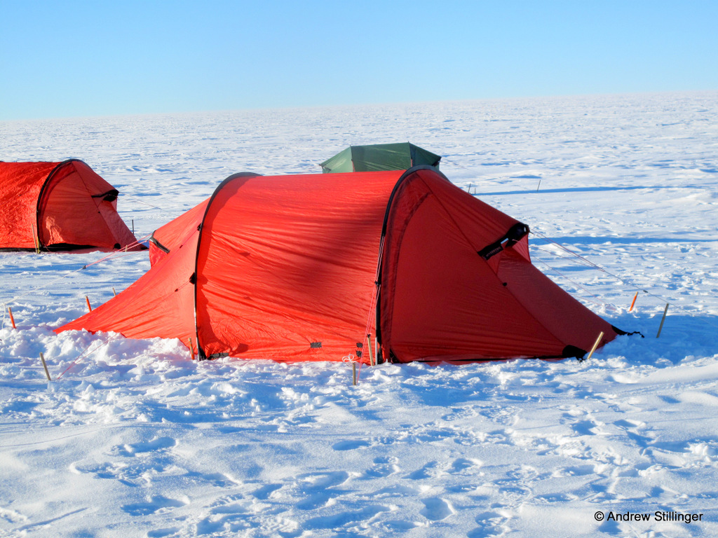 tent temp IMG_6901Andy is my brother, Andy Stillinger, who along with Bob Melville the project lead, spends every Antarctic summer visiting about half a dozen remote sensing stations – Automatic Geophysical Observatories, or AGOs, located roughly in a circle several hundred miles away from the South Pole. This describes a typical “morning” for him and the rest of the field project team on site, which include Andy, Bob the project lead, and a third person, rotating every year, who is trained in emergency medical procedures. For this week’s blog I spent some time talking to Andy about the AGO field maintenance project cycle to learn more about the program and the unusual challenges he and his team face from a project management standpoint. He was kind enough to share his stories and photographs with me.