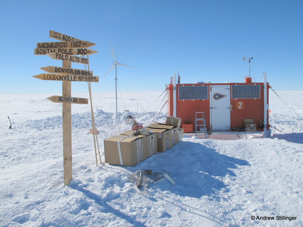 IMG_6329In the early 1990’s a consortium of research institutions established 6 sensor stations known as Automated Geophysical Observatories, or “AGOs,” located roughly in a ring several hundreds miles around the South Pole, which contain a variety of geophysical, atmospheric, and space sensing equipment along with communications equipment for transmitting the data back to servers on the US mainland. Research scientists (principle investigators, or “PIs”) at Berkeley, Stanford, Augsburg (MN), and the University of Maryland, among others, design experiments, provide equipment for installation at the AGOs, and then harvest their data remotely. The program is currently sponsored by the Center for Solar Terrestrial Research at the New Jersey Institute of Technology (NJIT), where Andy and Bob are employed as engineers and funded by a series of grants from the National Science Foundation (NSF). Continued funding depends on the ability of these sensor stations to power themselves and send data back to the scientists reliably.