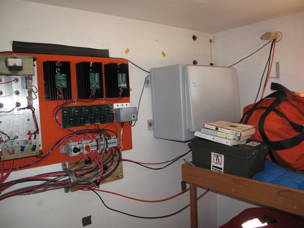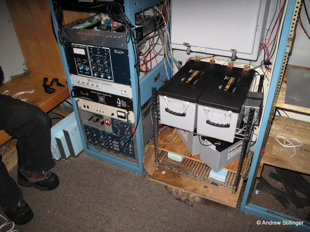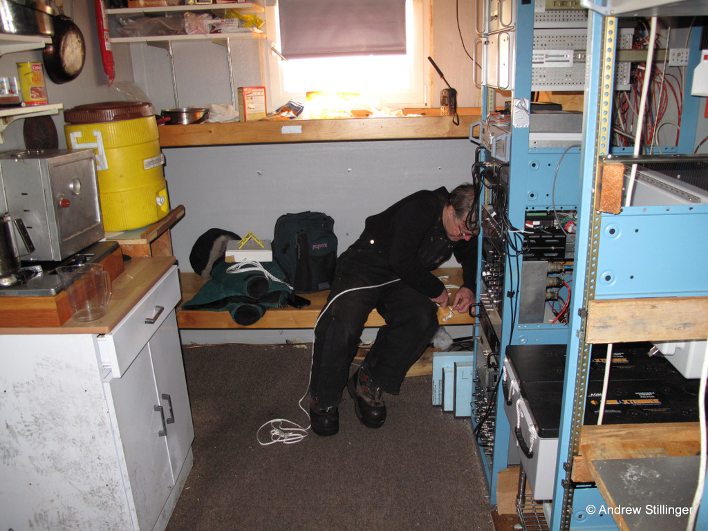 Within the shelter, Andy and Bob fix and upgrade electrical and power equipment with circuitry that they have planned and designed over the previous year. as well as assess the health of the rest and perform on-the-spot repairs. Upgrading, and ad-hoc repair, to the systems have become easier as Andy and Bob have returned to the AGOs over several seasons, becoming more familiar with the equipment and so making them better able to prepare for contingencies and better plan the parts and tools they might need. They have also