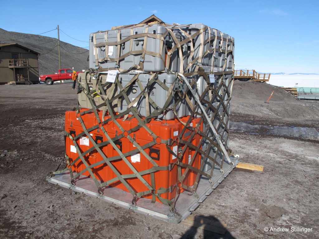 Once the planning and preparation are complete, getting to an Automatic Geophysical Observatory (AGO) site can seem like a project in itself. Every year Andy, Bob and the rest of the team are required to pass a complete physical, update their dental records (in case body identification is required), and complete emergency and survival training. The team have to pack delicate equipment and all the supplies they think they could possibly need, along with their luggage, for shipping via commercial and military transport.
